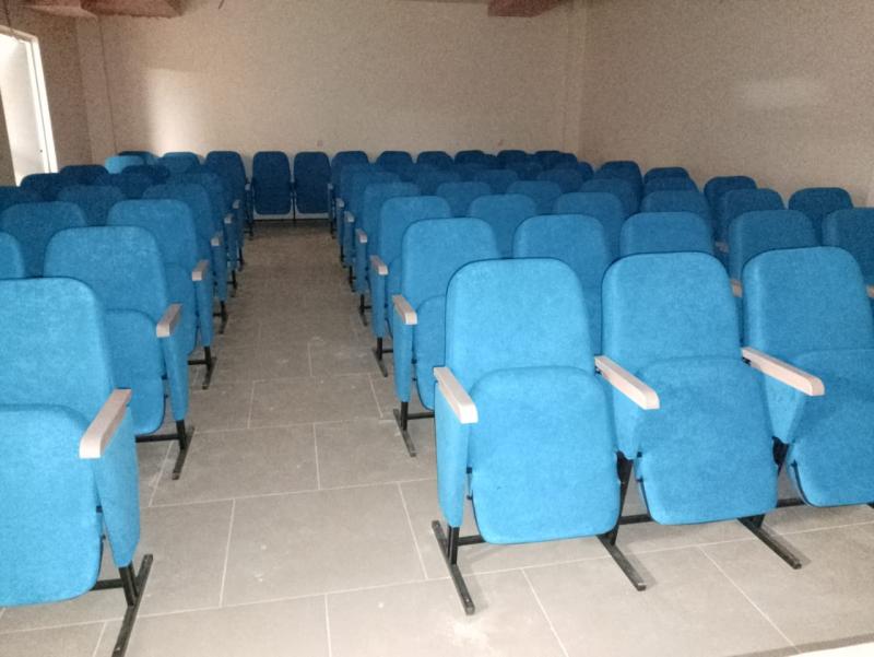 Установили секции Спутник 3М https://kresla-yug.ru/catalog/teatralnye_kresla/kresla_mobilnye_otkidnye/kreslo_sputnik_3m/