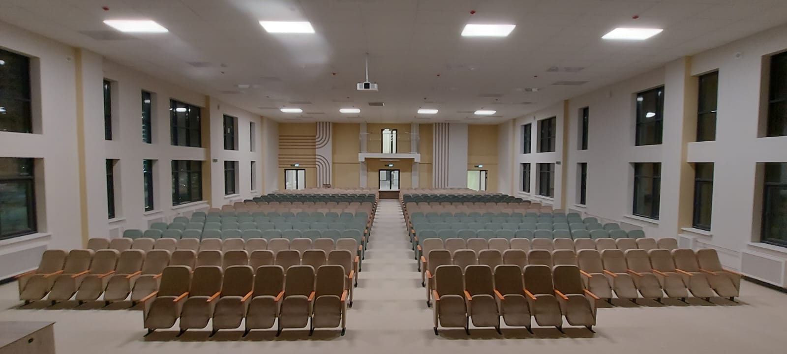 Модель: Форвард люкс. Теплые оттенки бежевого и зеленого придали благородства этой модели, и при этом оживили актовый зал!!!